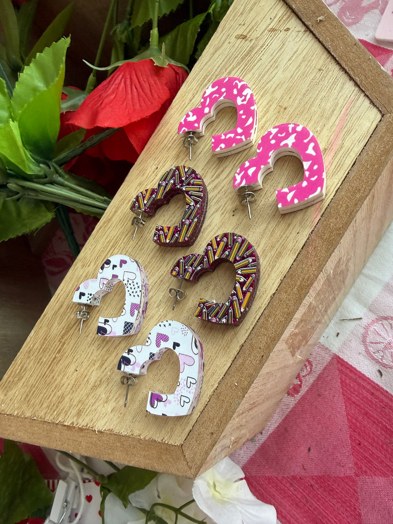 Apple heart pencil stud earrings